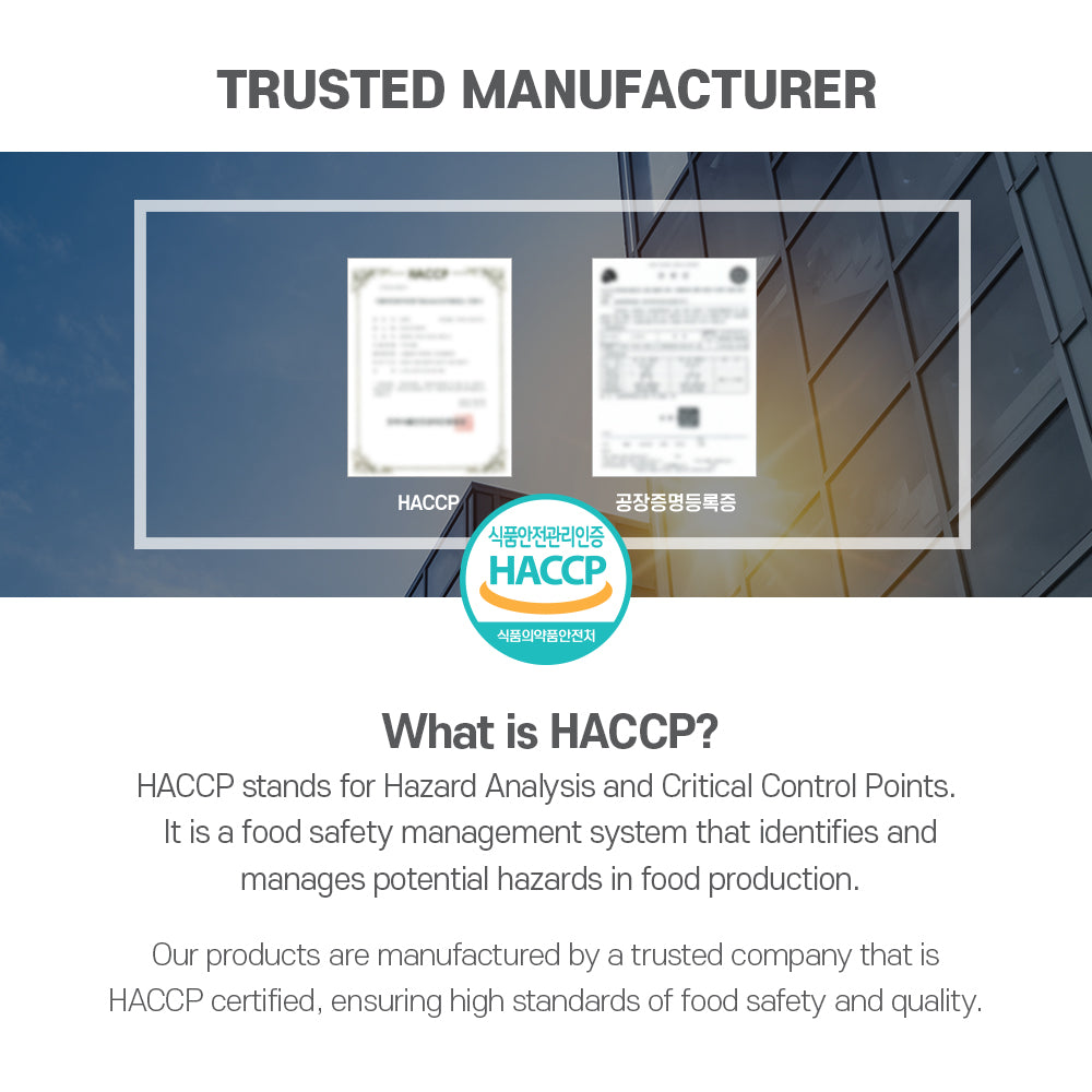 不含 HPMC 和 CMC-CA 等化学成分,并经过 HACCP 认证制造