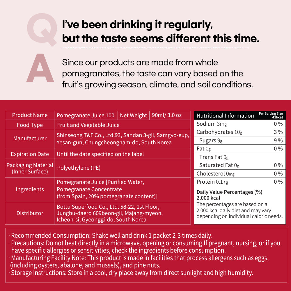 - 精心挑选的 100% 优质西班牙石榴汁:因其高含糖量以及甜味和酸味的均衡混合而入选。