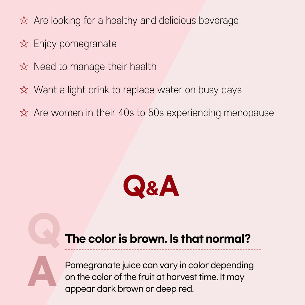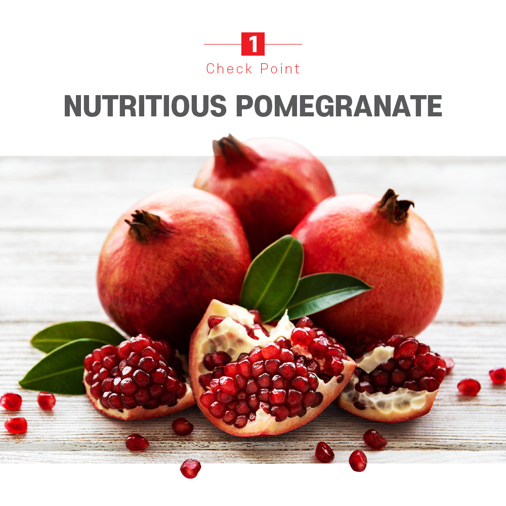 - 由营养丰富的石榴制成的健康果汁,包括鞣花酸、辅酶 Q-10 和植物雌激素。
