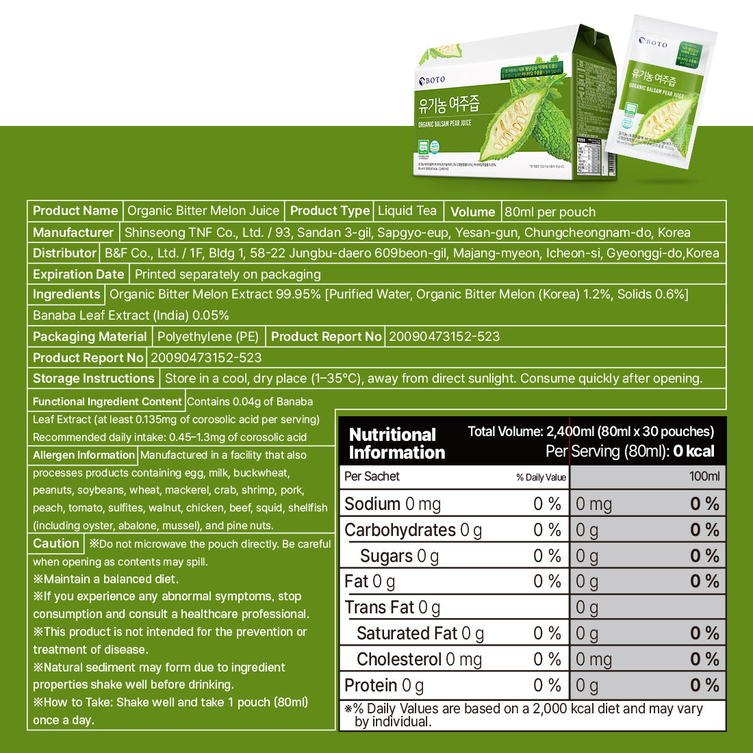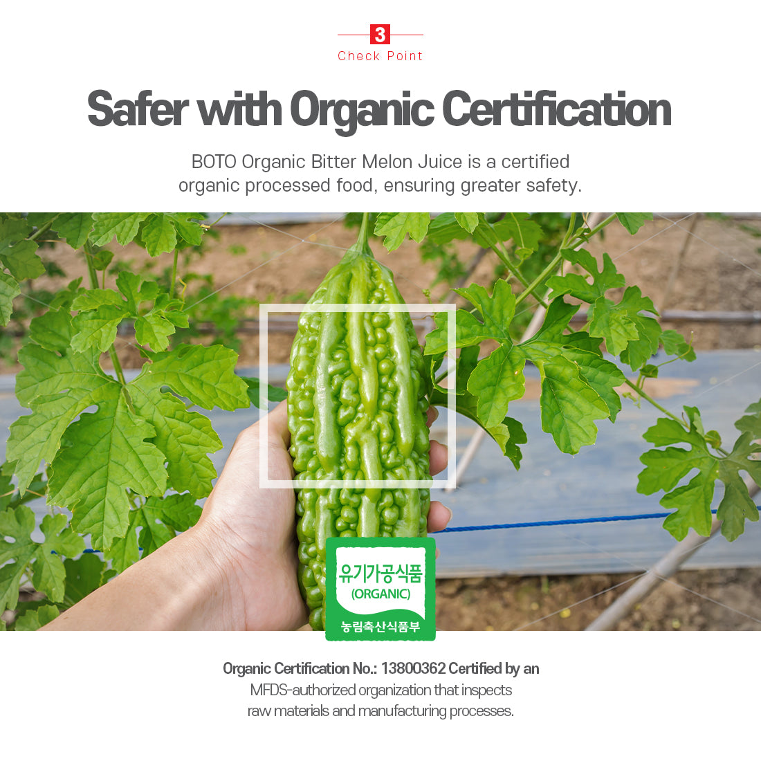 - 精心培育的韩国有机苦瓜:采用在肥沃的土壤和充足的阳光下精心种植的有机苦瓜制成